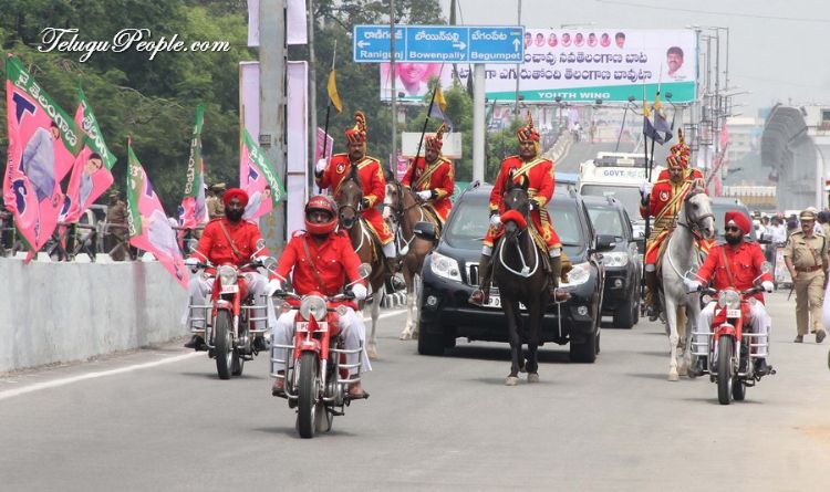 First Chief Minister of New State Telangana K Chandershekar Rao taking salute from police and armed reserve forces at a specially held parade at Parade Grounds in Secunderabad on Monday.