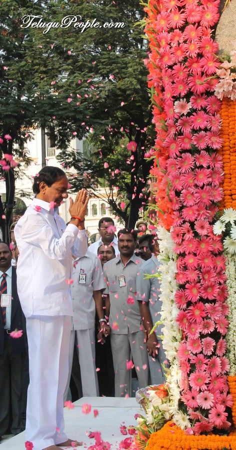First Chief Minister of New State Telangana K Chandershekar Rao taking salute from police and armed reserve forces at a specially held parade at Parade Grounds in Secunderabad on Monday.