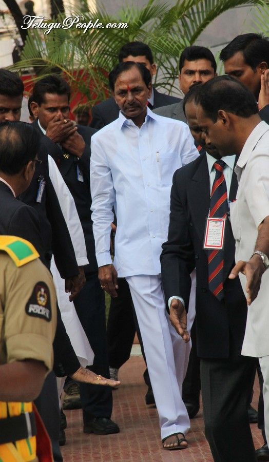 First Chief Minister of New State Telangana K Chandershekar Rao taking salute from police and armed reserve forces at a specially held parade at Parade Grounds in Secunderabad on Monday.