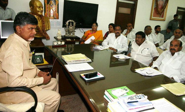 TDP chief, Chief Minsiter designate of Andhra Pradesh N Chandrababu Naidu meeting with party MPs at NTR Trust Bhavan here on Tuesday.