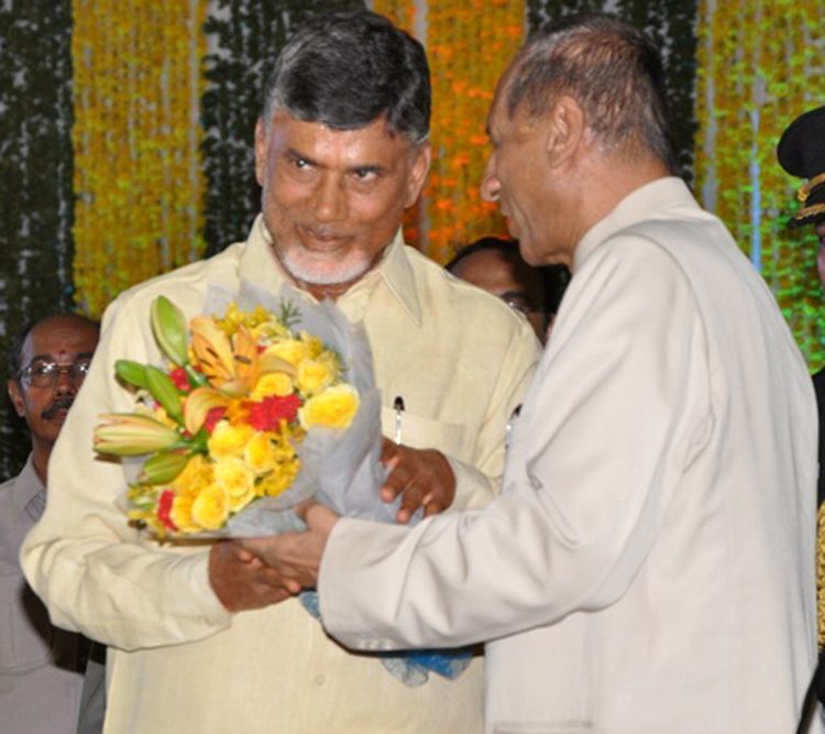 TDP president Nara Chandrababu Naidu taking oath as Chief Minister of Andhra Pradesh at a grand ceremony held near ANU campus in Guntur dist on Sunday.