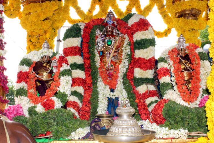 Thousands of devotees dragged the chariot carrying deities of Lord Prasanna Venkateswara along with His consorts around the temple during 'Rathothsavam' (chariot festival) on Sunday as part of the ongoing Brahmotsavam near Tirupati.