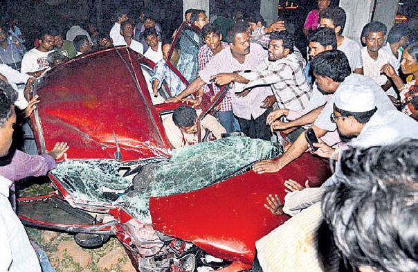 Three killed when a truck went out of control and collided with cars coming in the opposite direction near Shamshabad on Sunday.