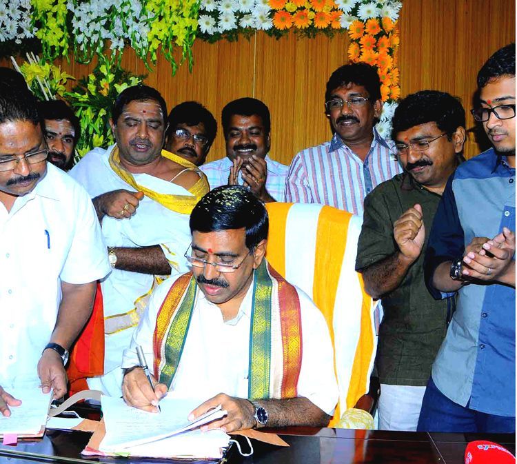 AP Minister for Municipal affairs and Urban Planning P. Narayana assuming charge at his chambers in Secreteriat on Wednesday.