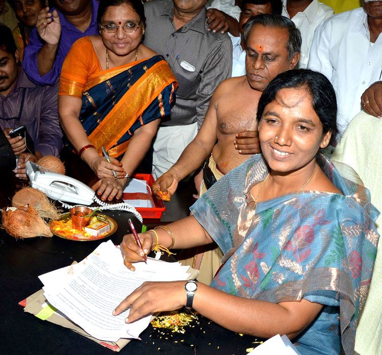 AP Minister for Civil Supplies Paritala Sunita assuming charge at her chambers in Secreteriat on Wednesday.