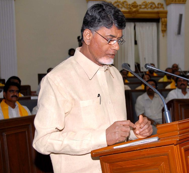 Chief Minister of AP N Chandrababu Naidu taking oath as member of legislative assembly on the first day of sessions on Thursday.