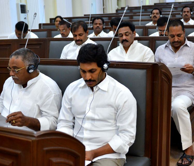 YSRCP president and leader of opposition YS Jaganmohan Reddy listening to the speech of Governor ESL Narasimhan with rapt attention during his address to the joint session of the house in Assembly on Saturday.