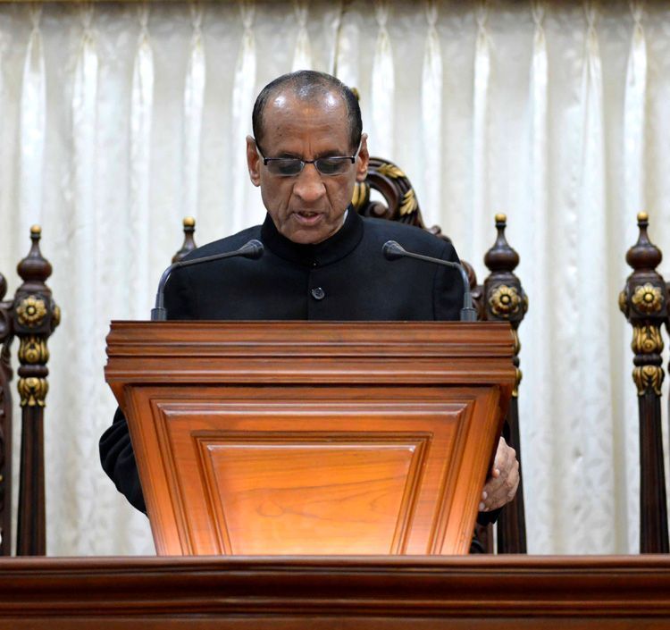 Governor of AP ESL Narasimhan addresses the joint house of AP legislature in Assembly hall on Saturday.