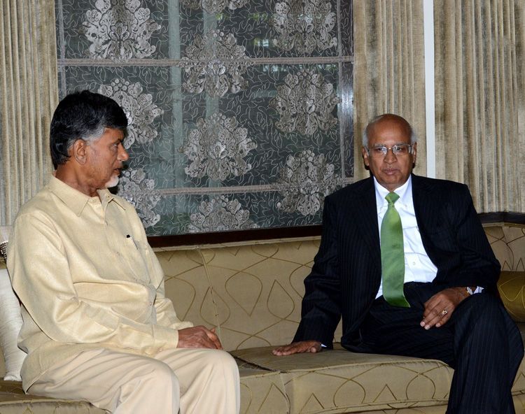 Tata Advanced Systems Chairman S Ramadorai meeting chief minister of Andhra Pradesh N Chandrababu Naidu at his residence on Monday.