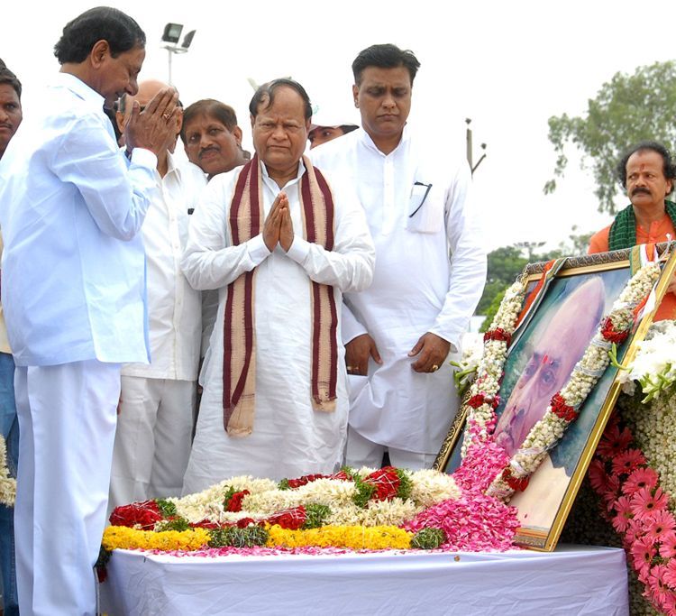 Telangana chief minister K Chandrasekhara Rao paying tributes to former prime minister PV Narasimha Rao on his birth anniversary at PV Ghat in Hyderabad on Saturday.