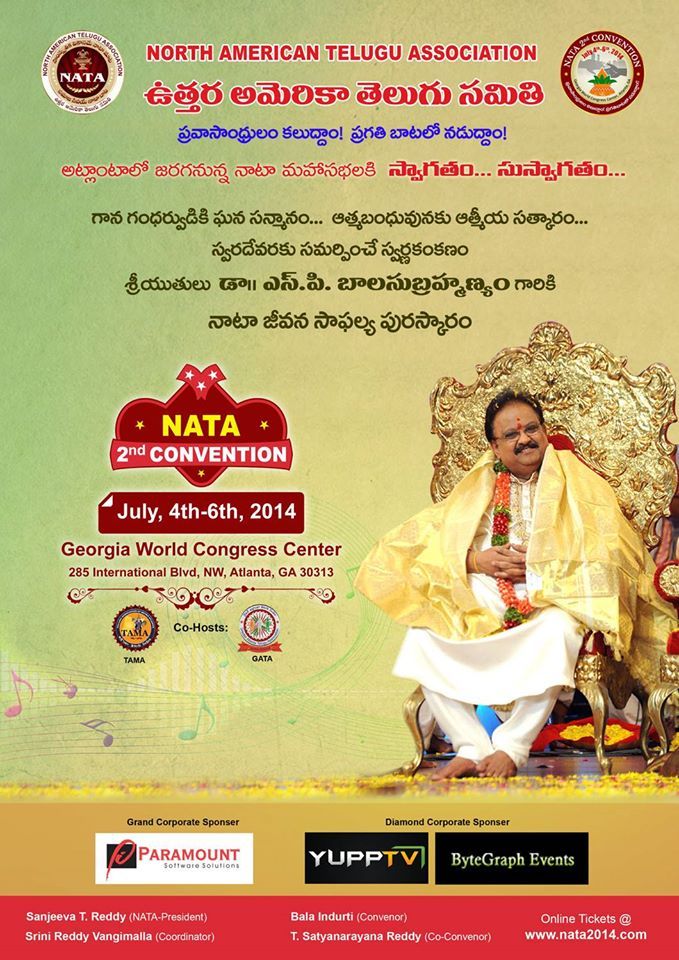 The biennial North American Telugu Association (NATA) Convention to be held at GWCC Convention center in Atlanta downtown from July 4th is expected to have over 10,000 guests. Posters by NATA.