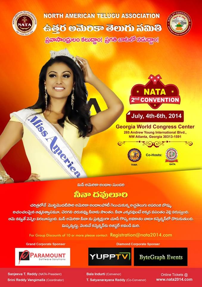 The biennial North American Telugu Association (NATA) Convention to be held at GWCC Convention center in Atlanta downtown from July 4th is expected to have over 10,000 guests. Posters by NATA.