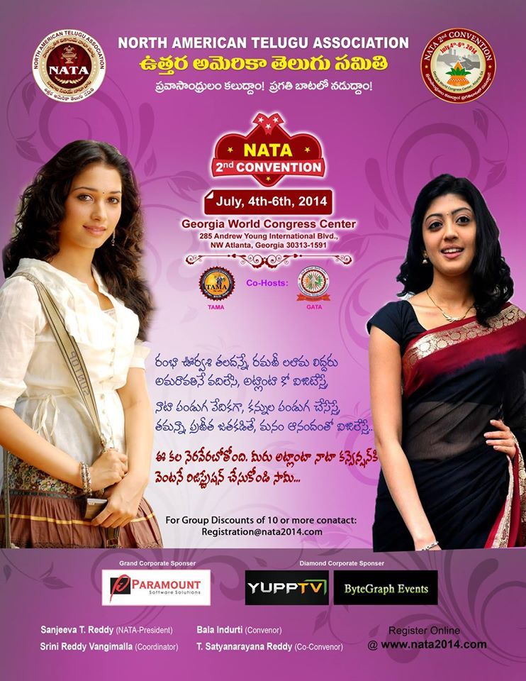 The biennial North American Telugu Association (NATA) Convention to be held at GWCC Convention center in Atlanta downtown from July 4th is expected to have over 10,000 guests. Posters by NATA.