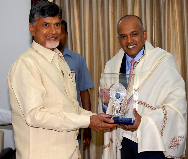 Singapore minister of foreign affairs K Shanmugam met Chief Minister of Andhra Pradesh N Chandrababu Naidu at Lake View Guest House in Hyderabad on Thursday.