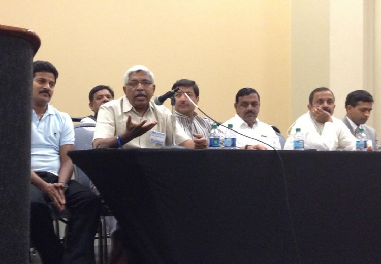 Prof. Kodanda Ram speaking at the Political Forum at ATA Convention. T-TDP Leader Revanth Reddy and Ex-MP Madhu Yaskhi were also on the dias.