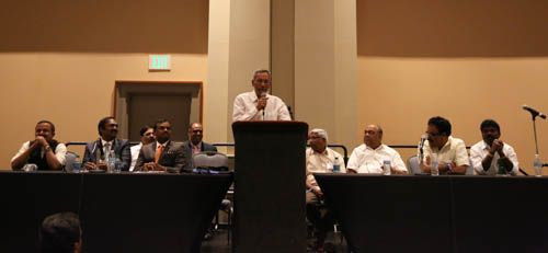 Discussion on Role of NRIs in the Development of New States and Investment Opportunities for NRIs. Prof. Kodanda Ram, Senior Journalists K. Rama Chandra Murthy and K. Srinivas, First NRI MP in India Madhu Yaskhi, Senior Leader Nagam Janardana Reddy explained the ground realities and opportunities.