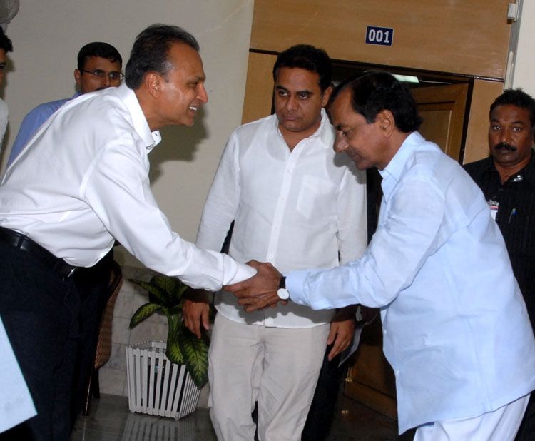 Reliance ADA Group chairman Anil Dhirubhai Ambani on Monday called chief minister of Telangana K Chandrasekhar Rao at Hyderabad.