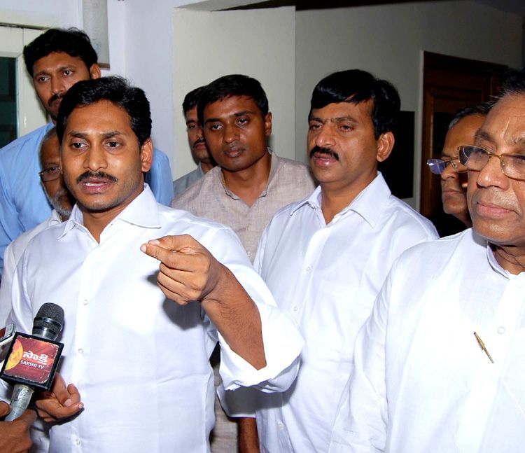 YSRC president YS Jaganmohan Reddy on Friday speaking to media persons in New Delhi after meeting Union Petroleum minister Pradhan along with party MPs.