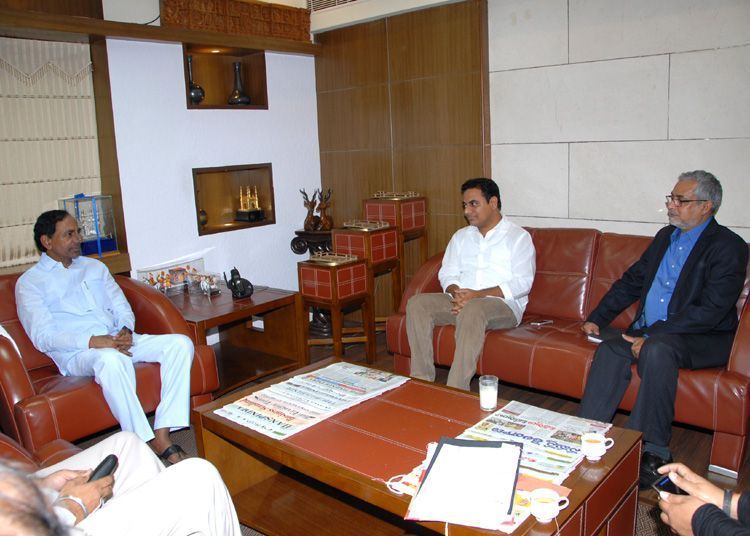 Microsoft India chief Bhasker Pramani meeting Chief Minister Telnagana K Chandrashekar Rao at Secretariat here on Monday. IT minister K Taraka Rama Rao is also seen in the picture.