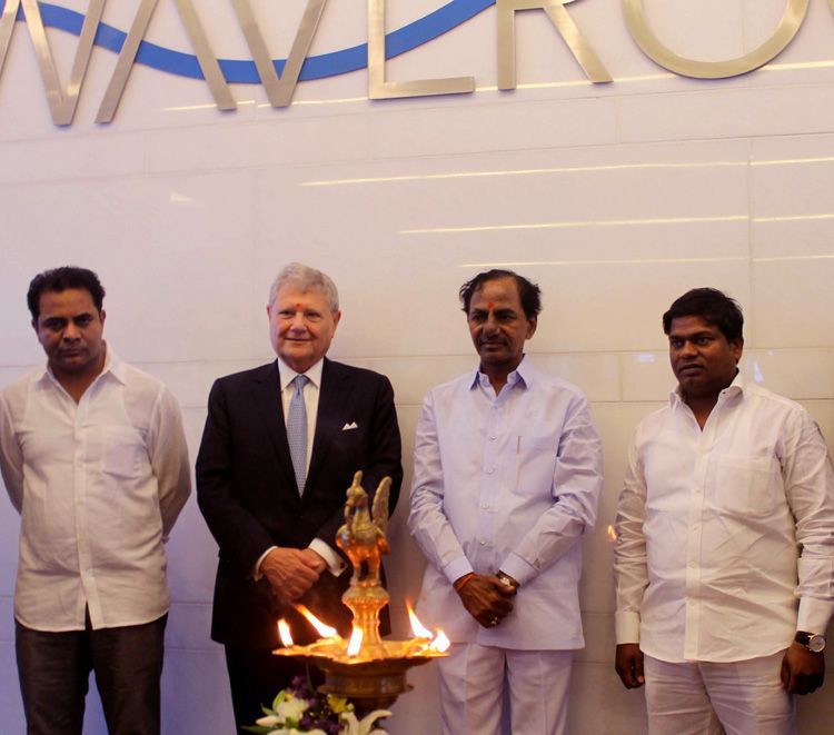 Chief Minister of Telangana K Chandersheker Rao inaugurated the WaveRock IT Park at Nanakramguda in Hyderabad on Tuesday. Jerrey Speyer, chairman Tishman Speyer, IT minister K T Rama Rao also participated in the programme.