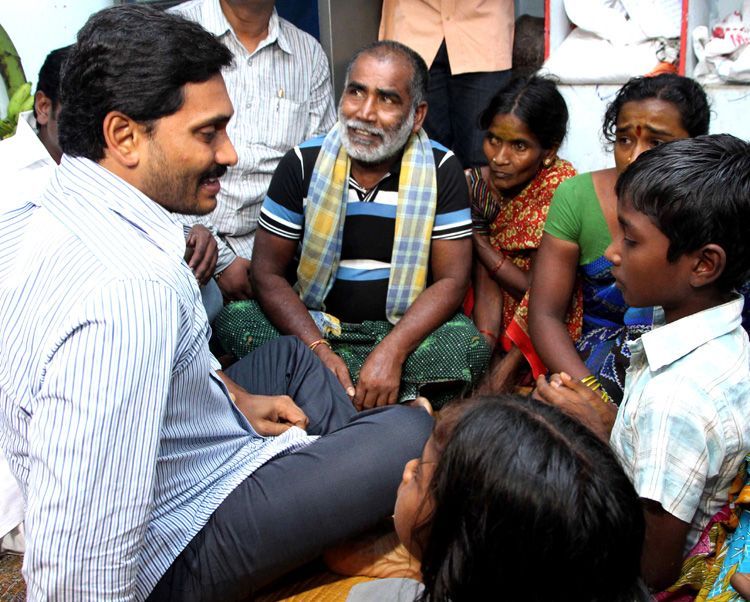 YSRCP president and leader of opposition in AP Assembly YS Jaganmohan Reddy consoling the family members of a worker died in Chennai building collapse in Kollivalasa village of Srikakulam district on Thursday.