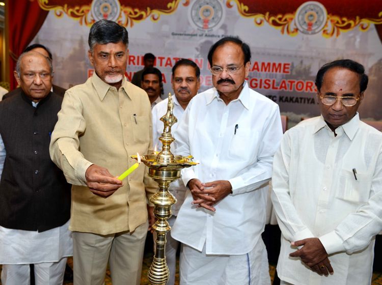 AP chief minister N Chandrababu Naidu inaugurating the Orientation programme for legislators of Andhra Pradesh held at Hotel Grand Kakatiya in Hyderabad on Friday.