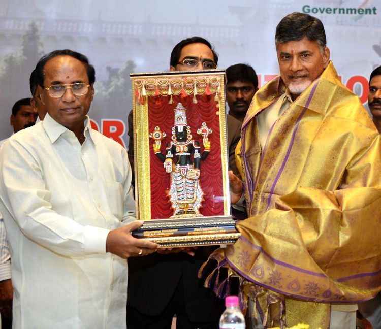 AP chief minister N Chandrababu Naidu being felicitated by Speaker Kodela Siva Prasada Rao at Orientation programme for legislators of Andhra Pradesh held at Hotel Grand Kakatiya in Hyderabad on Friday.