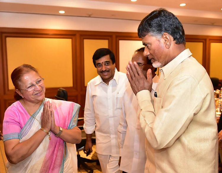 AP Chief Minister N Chandrababu Naidu greeting Lok Sabha speaker Sumitra Mahajan when she arrives at venue to address the concluding session of AP Legilators Oreintaion Programme held in Hyderabad on Saturday.