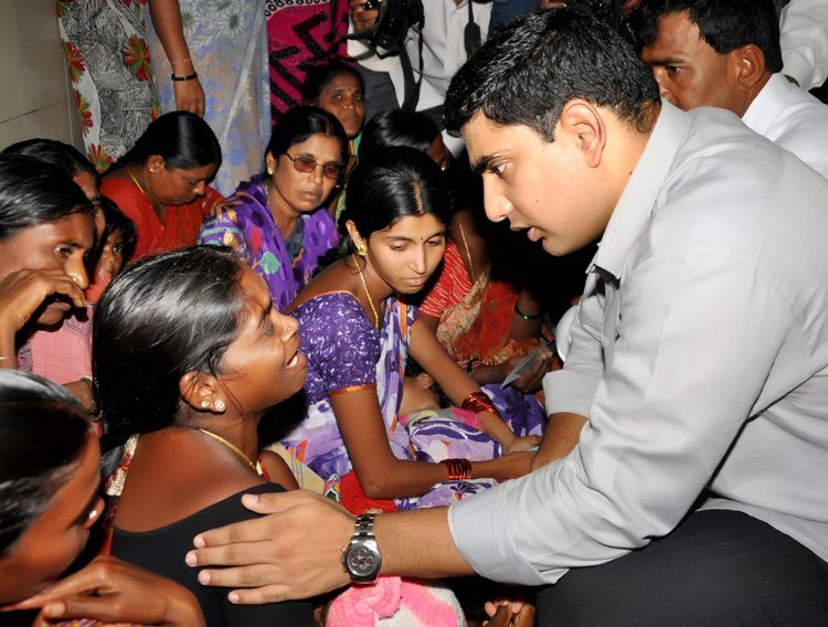 TDP leader Nara Lokesh visits injured students in Masaipet mishap being treated at Yashoda hospital on Monday and handed over cheques to parents of students.