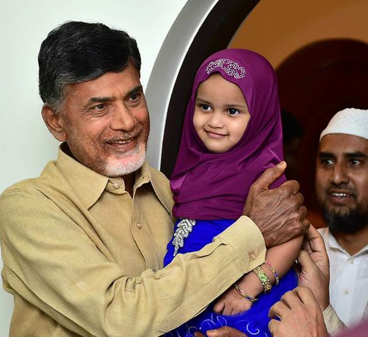 Chief Minister of Andhra Pradesh N Chandrababu Naidu celebrates Ramzan festival at his residence with Muslims who hail from Chittoor district on Tuesday.