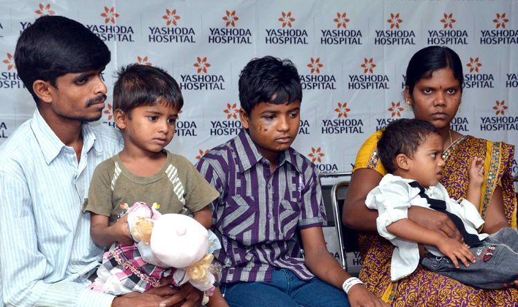 A child, who was severely injured in the school bus-train collision in Medak district last week, sitting in his mother’s lap before being discharged from Yashoda Hospital in Secunderabad on Wednesday.