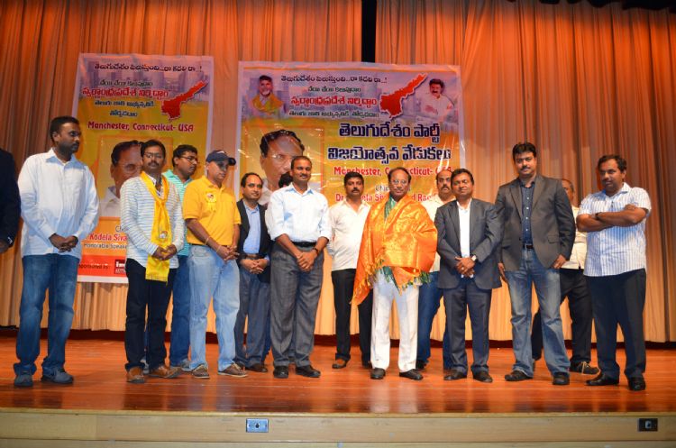 TANA President Mohan Nannapaneni and NATS President Gangadhar Desu shared the dias with AP Assembly Speaker Dr. Kodela Siva Prasad Rao in an NRI TDP Event held at Connecticut, USA on Saturday Aug 2nd evening. 30,000 dollars were raised for the Capital Development Fund in the meeting.