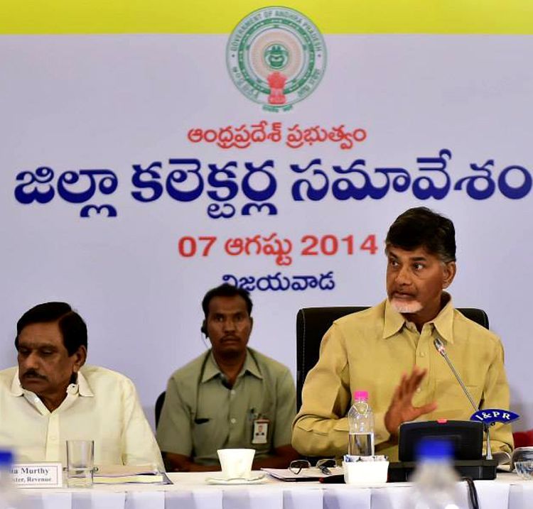 Andhra Pradesh chief minister N Chandrababu Naidu seen addressing the conference of Collectors held at a hotel in Vijayawada on Thursday.