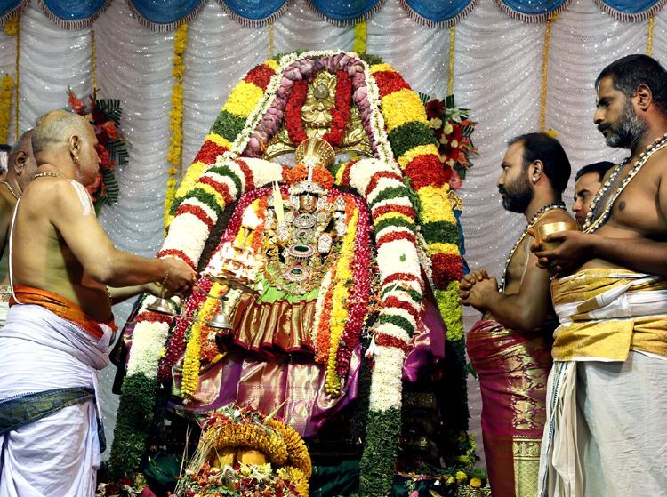 Varalakshmi Vratam has been celebrated with grandeur in the abode of Goddess Padmavathi Devi at Tiruchanoor on Friday. Over five hundred couples took part in this mass Varalakshmi Vratam organised by TTD in Asthana Mandapam at temple town of Tiruchanur.