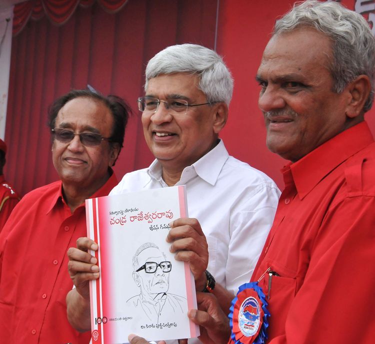 A massive rally held by activists of CPI in Hyderabad on Monday to commemorate the centenary celebrations of comrade Chandra Rajeswara Rao. CPI and CPM national leaders Suravaram Sudhakara Reddy, Prakash Karat addressed the gathering at Nizam College.