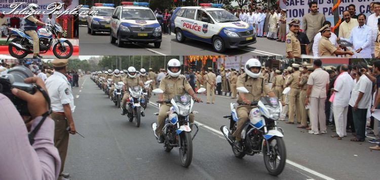 Telangana Chief Minister K Chandrasekhara Rao flags off Innova cars and motorcycles procured for city police at Tank Bund in Hyderabad on Thursday.