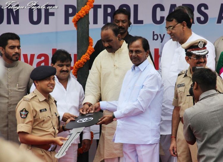 Telangana Chief Minister K Chandrasekhara Rao flags off Innova cars and motorcycles procured for city police at Tank Bund in Hyderabad on Thursday.