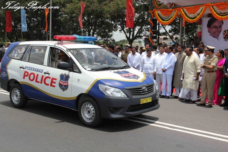 Telangana Chief Minister K Chandrasekhara Rao flags off Innova cars and motorcycles procured for city police at Tank Bund in Hyderabad on Thursday.