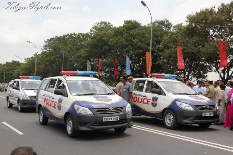 Telangana Chief Minister K Chandrasekhara Rao flags off Innova cars and motorcycles procured for city police at Tank Bund in Hyderabad on Thursday.