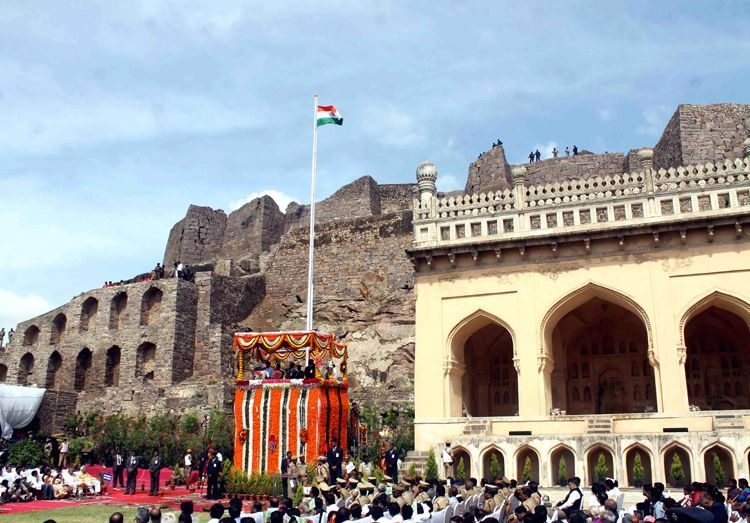 Telangana chief minister K Chandrasekhar Rao unfurled national flag at the historic Golconda Fort on Friday on the eve of Independence Day. It is the only fort that was never conquered by armies, but seized by deceit. This speaks volumes about this magnificent granite edifice dating back to the 16th century. Historians say the Kakatiyas of Warangal originally constructed the mud fort at Golconda in 1347 and it was subsequently rebuilt in granite by later rulers, especially Sultan Quli, Jamshed Qutub Shahi and Ibrahim Qutub Shahi between 1518 and 1580.