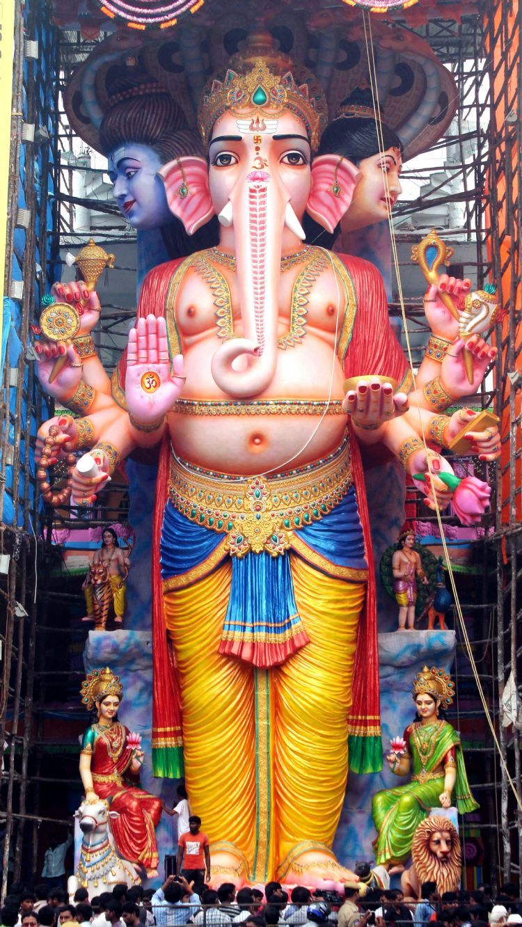 60 feet high Ganesh idol, the tallest in Telangana, being installed at Khairatabad in Hyderabad on the eve of Ganesh Chaturdi.