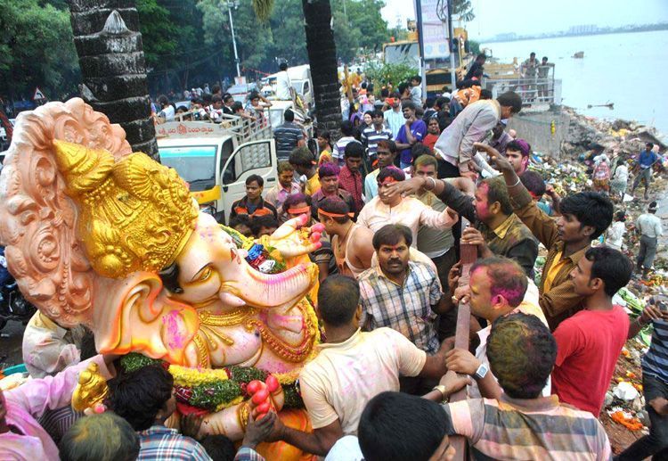 The immersion of Ganesh idols in water bodies, marking the conclusion of the ten-day long Ganesh festival, began this morning in Hyderabad. Tens of thousands of people participated in the ceremonial rally of final journey of Lord Ganesha culminated at Hussain Sagar in the city.