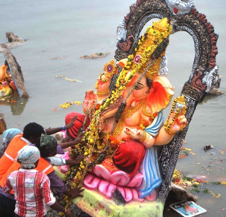 The immersion of Ganesh idols in water bodies, marking the conclusion of the ten-day long Ganesh festival, began this morning in Hyderabad. Tens of thousands of people participated in the ceremonial rally of final journey of Lord Ganesha culminated at Hussain Sagar in the city.