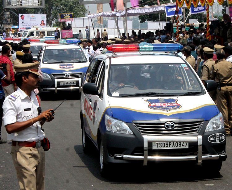 Telangana home minister Nayani Narsimha Reddy Friday flagged off Interceptor vehicles for Hyderabad police at People's Plaza, Necklace road in Hyderabad.