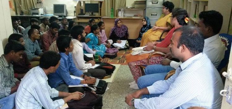 Ms. Kondaveeti Satyavathi, well-known Writer and Editor of Bhumika, a feminist magazine, is actively involved in Women welfare activities for the last two decades. She conducted a 2.5 hour class for 50 social workers at Bhumika office in Hyderabad on Thursday. She explained how Bhumika Helpline works, how to work with Police, about the Nirbhaya Act, Gender Discrimination Act, Domestic Violence Act etc. to provide knowledge and awareness. At the end of the class students promised that they will act responsibly when something goes wrong by saying 'I am Different'.