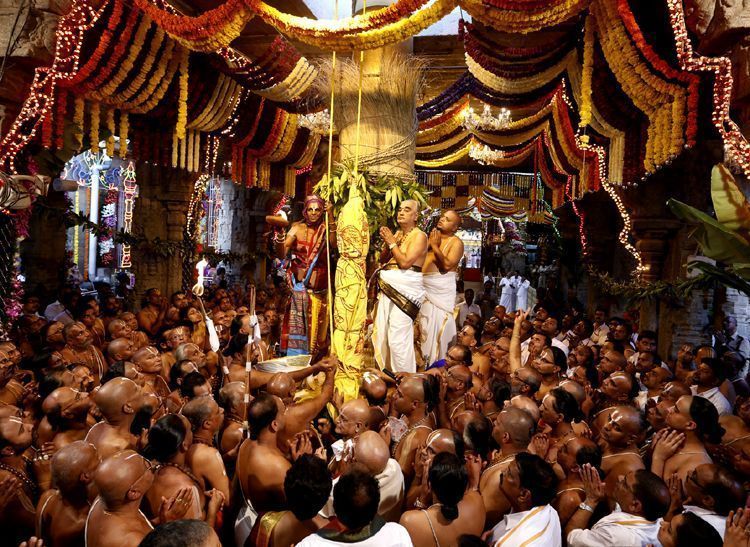 Dhwajarohanam has been carried out in a religious atmosphere amidst the chanting of Vedic mantras by the Archakas of the temple at the Dwajasthambham, near the Nadimi Padi Kavili inside the temple complex of Lord Venkateswara, marking the begining of Brahmotsvams on Friday.