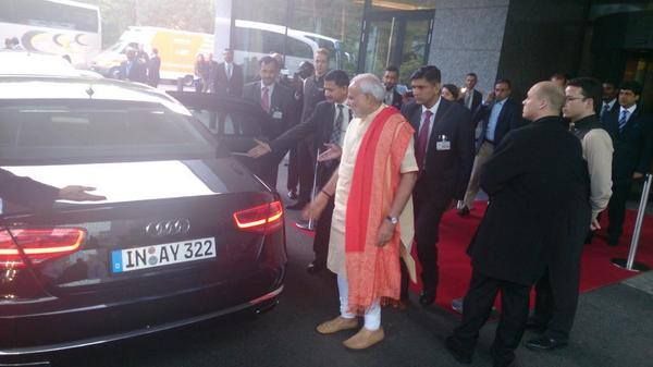 Prime Minister Narendra Modi arrived in New York on Friday for a five-day visit to the United States. Large number of Indian Americans welcomed him chanting 'Modi, Modi, Modi' and held placards to greet him.