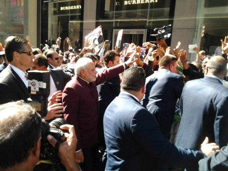 Prime Minister Narendra Modi arrived in New York on Friday for a five-day visit to the United States. Large number of Indian Americans welcomed him chanting 'Modi, Modi, Modi' and held placards to greet him.