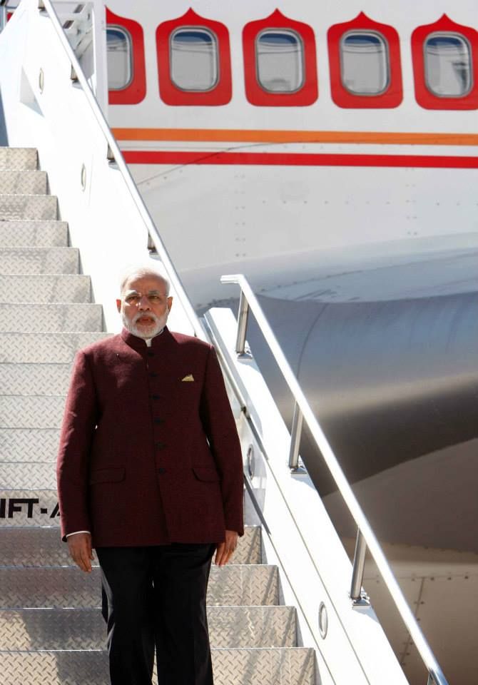 Prime Minister Narendra Modi arrived in New York on Friday for a five-day visit to the United States. Large number of Indian Americans welcomed him chanting 'Modi, Modi, Modi' and held placards to greet him.