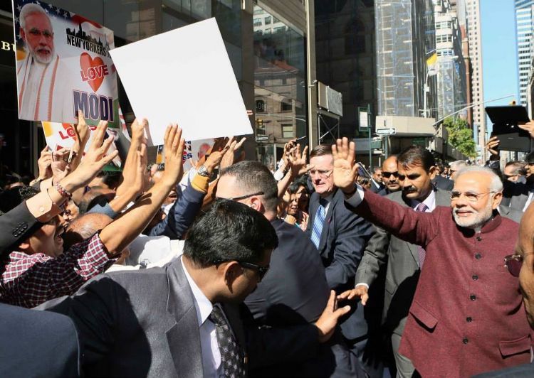 Prime Minister Narendra Modi arrived in New York on Friday for a five-day visit to the United States. Large number of Indian Americans welcomed him chanting 'Modi, Modi, Modi' and held placards to greet him.